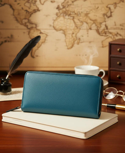 BLUE OPAL Leather Women Zip-Around Wallet | Premium Saffiano Clutch