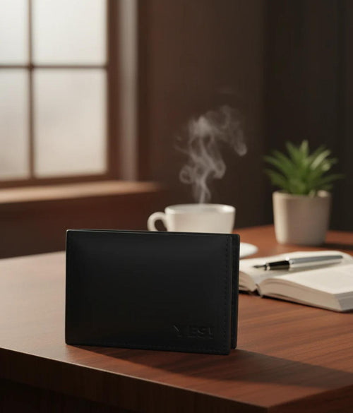 BLACK NIGHT Men's Black Leather Card Holder – Embossed Design